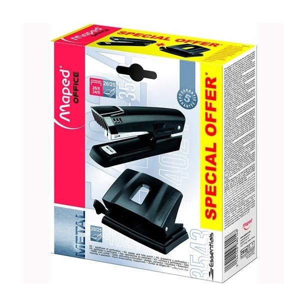 MAPED KIT ESSENTIAL METAL GRAPADORA 25H + PERFORADORA DE 2 AGUJEROS 35H NEGRO