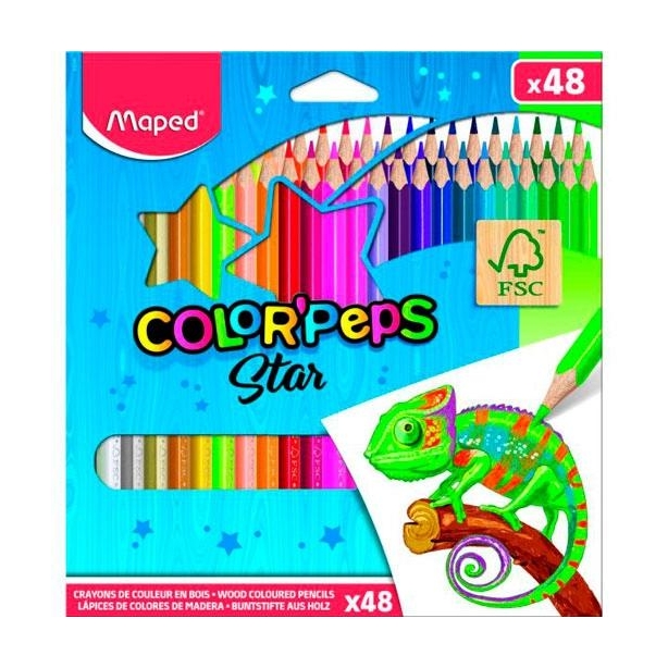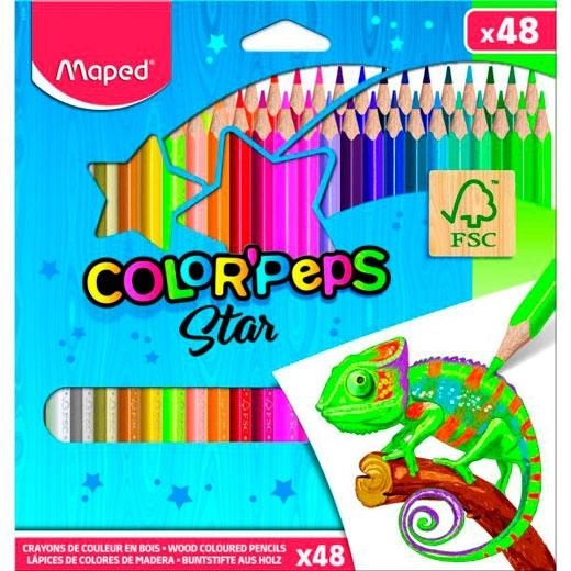 MAPED LÁPICES DE COLORES COLOR´PEPS STAR DE MADERA FSC ESTUCHE DE 48 C/SURTIDOS