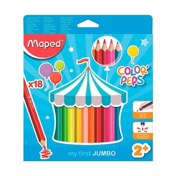 MAPED LÁPICES DE COLORES JUMBO COLOR´PEPS ESTUCHE DE 18 C/SURTIDOS