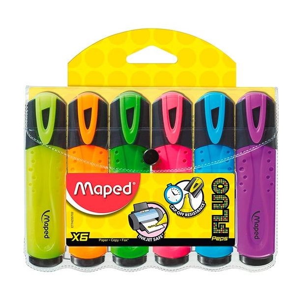 MAPED MARCADOR FLUORESCENTE PEPS CLASSIC COLORES SURTIDOS EN ESTUCHE DE 6