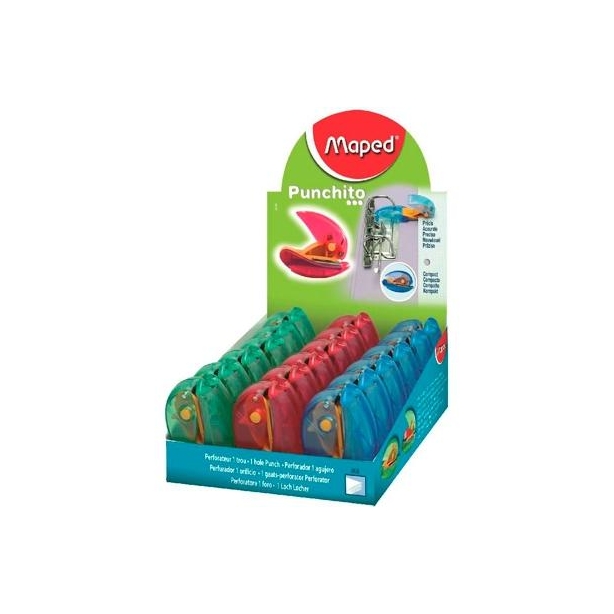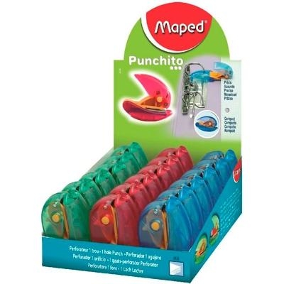 MAPED PERFORADORA PUNCHITO COMPACTA 1 AGUJERO COLORES -EXPOSITOR 18U-