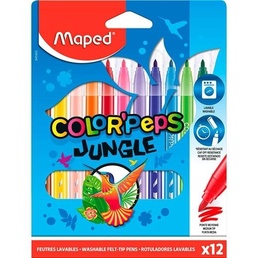 MAPED ROTULADORES COLOR´PEPS JUNGLE 2.0 ESTUCHE DE 12 C/SURTIDOS
