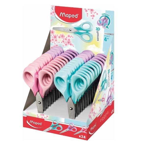 MAPED TIJERAS SENSOFT 3D DIESTROS 13CM SIMÉTRICAS C/SURTIDOS PASTEL -EXPOSITOR 24-