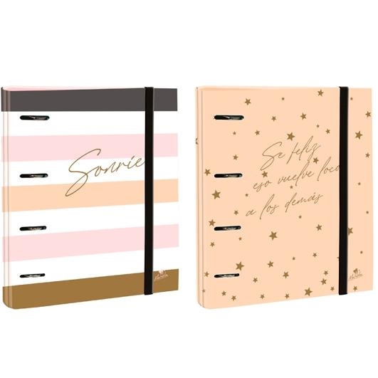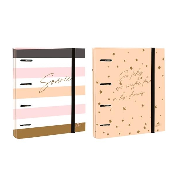 MARIOLA CARPEBLOCK 4 ANILLAS MIXTAS 40MM FOLIO C/GOMA CARTÓN FORRADO PLASTIFICADO 6 FRASES DISEÑOS SURTIDOS
