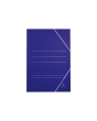 Carpeta de cartón reciclado azul con gomas en blanco y azul.