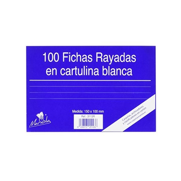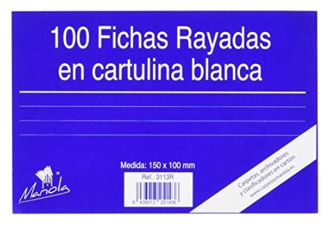 100 FICHAS DE CARTULINA RAYADA (150X100 MM) N.º 3 MARIOLA 3113R.