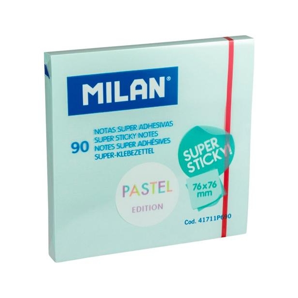 MILAN BLOC NOTAS SUPER ADHESIVAS 90H 76X76MM EDICIÓN PASTEL AZUL