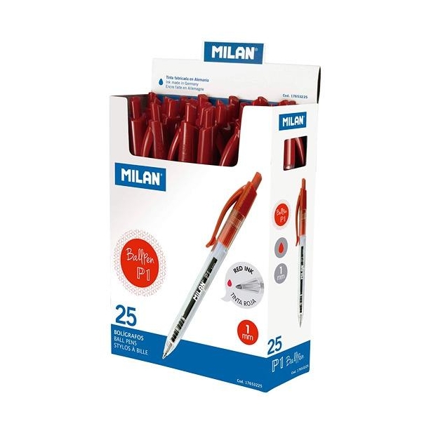 MILAN BOLÍGRAFO P1 CUERPO TRANSPARENTE ROJO -CAJA 25U-