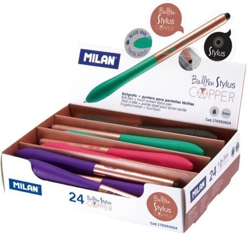 MILAN BOLÍGRAFO STYLUS COPPER CON PUNTERO AZUL 4 COLORES SURTIDOS EXPOSITOR -24U-