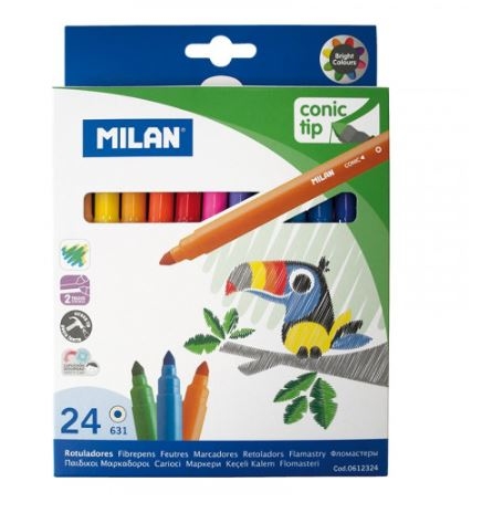 MILAN CAJA 24 ROTULADORES PUNTA CÓNICA BASE AGUA