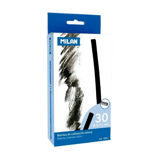 MILAN CARBONCILLO NATURAL CILÍNDRICO Ø9-11MM X 15CM EN CAJA DE 30 BARRITAS
