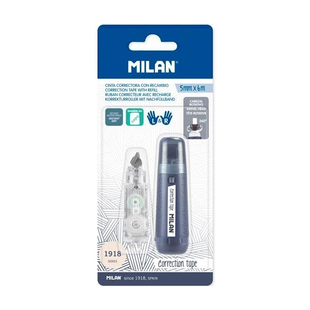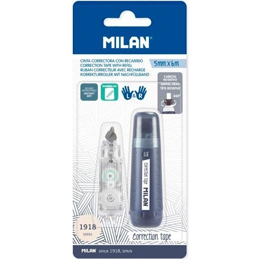 MILAN CINTA CORRECTORA 5MMX6M SERIE 1918 + 1 RECAMBIO BLÍSTER AZUL MARINO