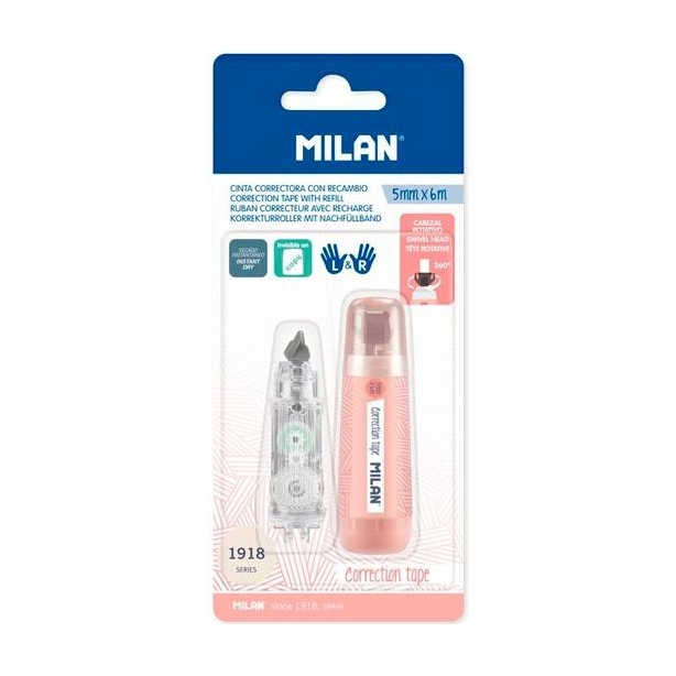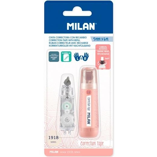 MILAN CINTA CORRECTORA 5MMX6M SERIE 1918 + 1 RECAMBIO BLÍSTER ROSA
