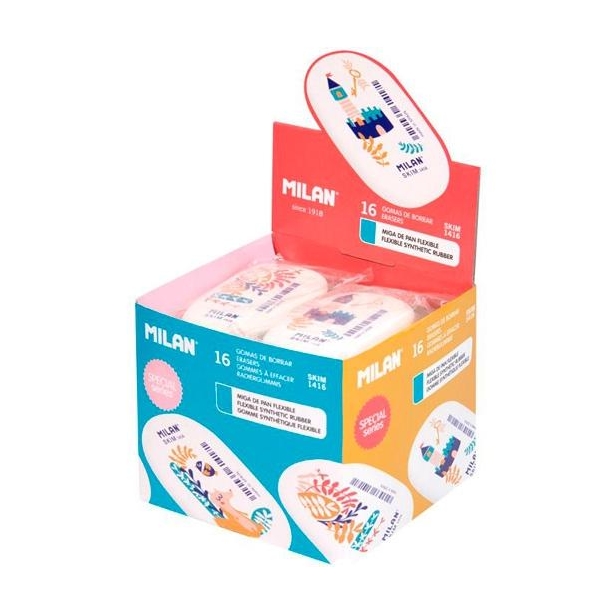 MILAN GOMA OVALADA 1416 SERIE SPECIAL STORY TIME CAJA EXPOSITORA DE 16 BLANCO