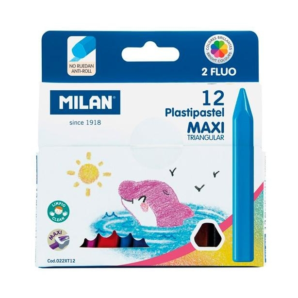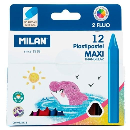 MILAN LÁPICES DE COLORES PLASTIPAPEL MAXI TRIANGULARES CAJA 12U C/SURTIDOS + 2 FLÚO