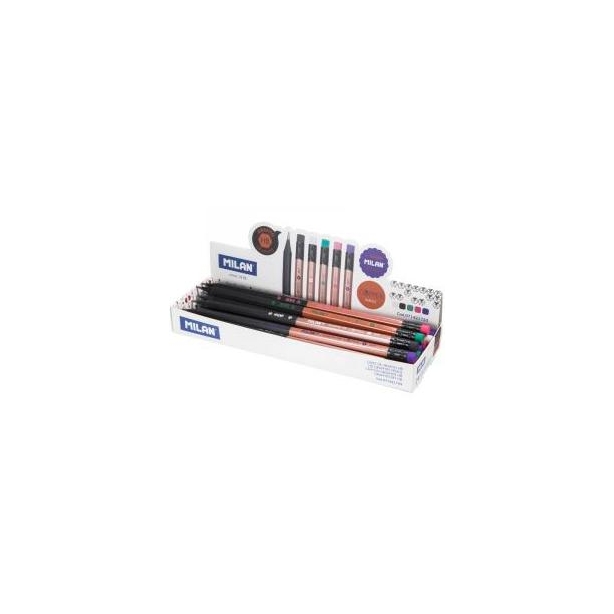 MILAN LÁPICES GRAFITO HB CON GOMA SERIE COOPER -CAJA EXPOSITORA 24U- C/SURTIDOS