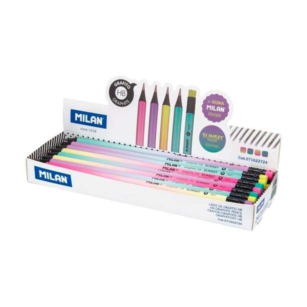 MILAN LÁPICES GRAFITO HB CON GOMA SUNSET COLORES SURTIDOS (24 UNIDADES)