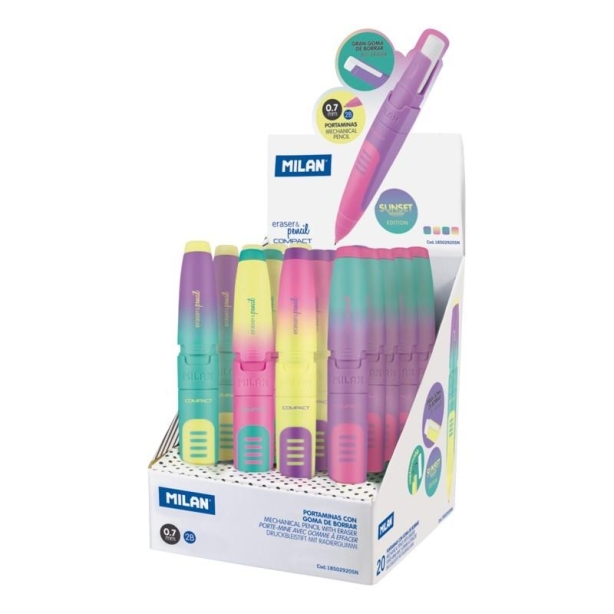 MILAN PORTAMINAS COMPACT SUNSET 0.7MM 4 COLORES CAJA EXPOSITORA 20U