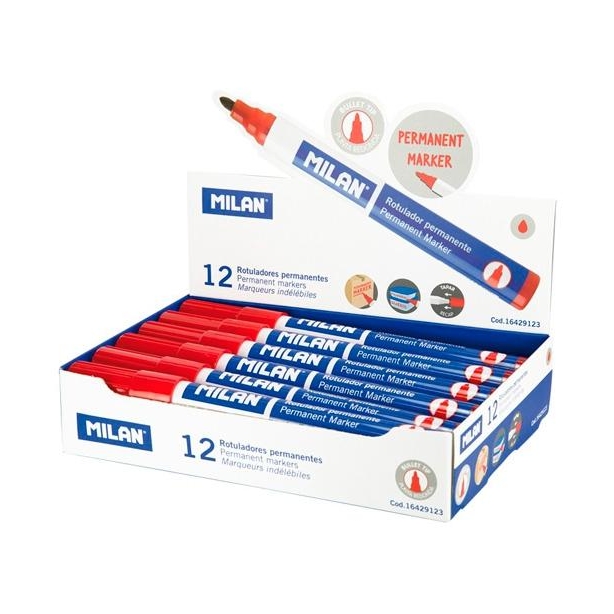 MILAN ROTULADOR PERMANENTE PUNTA REDONDA ROJO -12U-