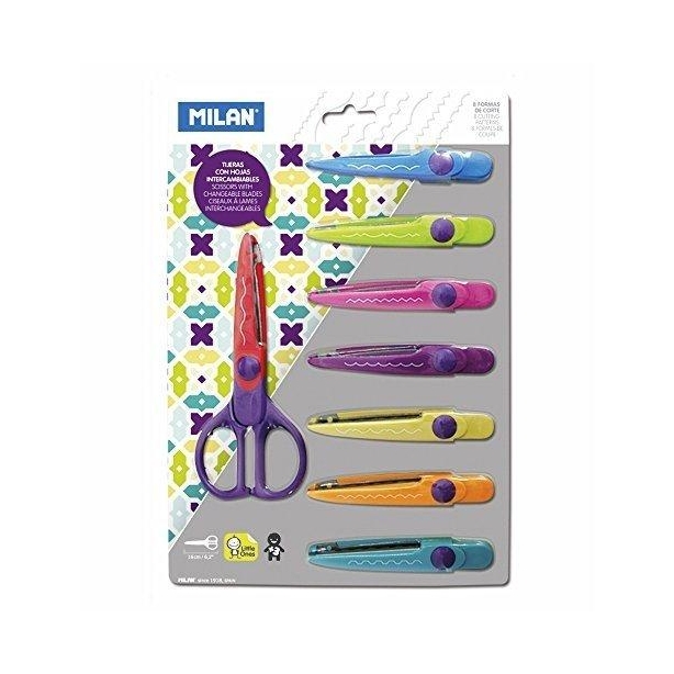 MILAN TIJERAS AMBIDIESTROS CORTE EN ZIG ZAG SIMÉTRICAS 8 HOJAS INTERCAMBIABLES C/SURTIDOS -BLISTER-