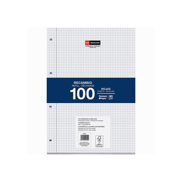 MIQUELRIUS RECAMBIO 4 TALADROS 100 HOJAS 90 GR 4X4 A4