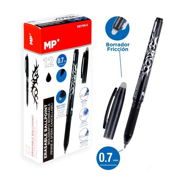 MP BOLIGRAFO CON CAPUCHÓN BORRABLE RETRÁCTIL 0.7MM NEGRO