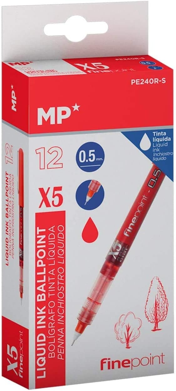 MP BOLÍGRAFO TINTA LÍQUIDA PUNTA AGUJA ROJO (12 UNIDADES)