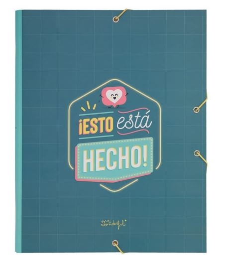 Carpeta separadora Esto esta hecho mr wonderful woa11103 . Una carpeta moderna y original carpeta separadora, con diseño Wonder y mensaje motivacional. Producto ideal para para organizar apuntes y documentos importantes. Incluye solapas y gomas en las esquinas, 12 separadores interiores, se entrega retractilado. Un producto único y con materiales de calidad.