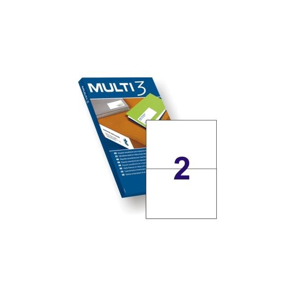 MULTI-3 ETIQUETAS ADHESIVAS 210X148MM INKJET/LÁSER C/RECTOS 2 X 100H BLANCO