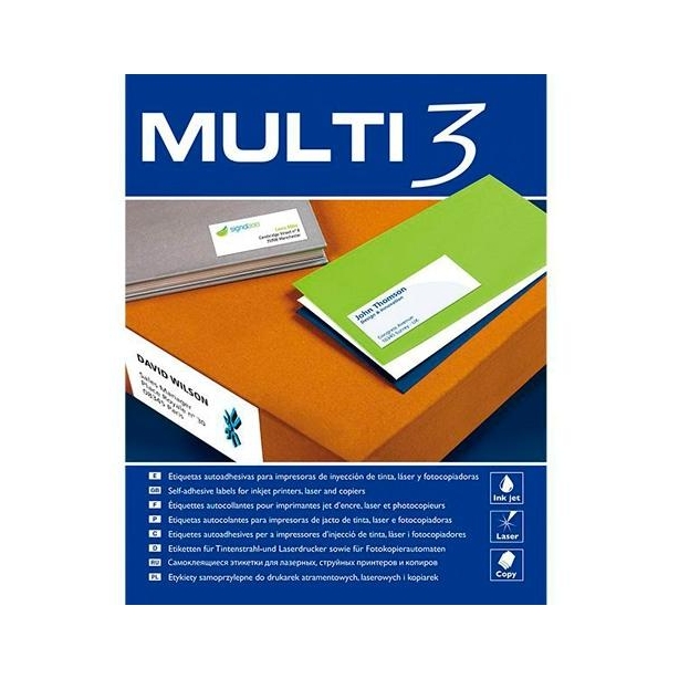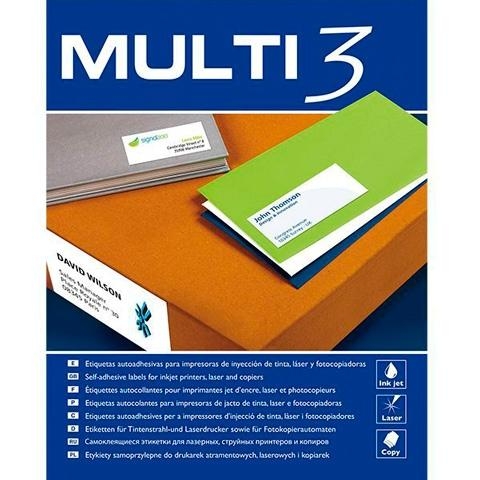 MULTI-3 ETIQUETAS ADHESIVAS 70X25,4MM INKJET/LÁSER C/RECTOS 33 X 500H BLANCO