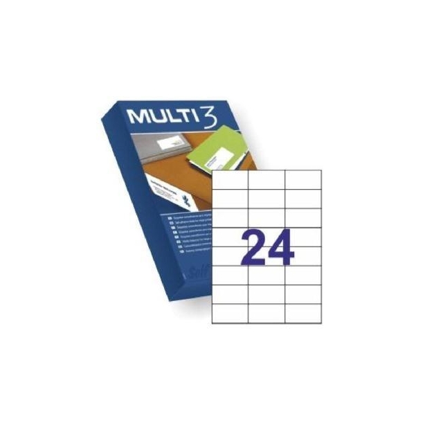 MULTI-3 ETIQUETAS ADHESIVAS 70X42,4MM INKJET/LÁSER C/RECTOS 24 X 500H BLANCO