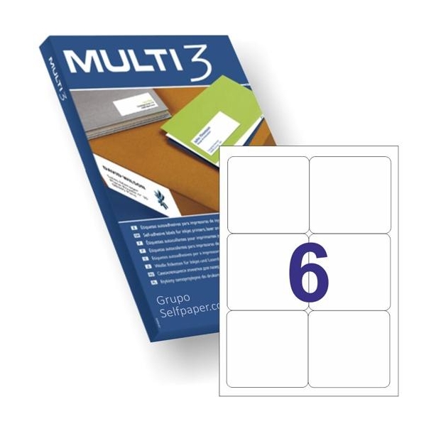 MULTI-3 ETIQUETAS ADHESIVAS 99,1X93,1MM INKJET/LÁSER C/ROMOS 6 X 100H BLANCO