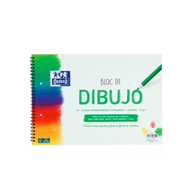 OXFORD BLOC DIBUJO ESCOLAR MULTITALADRO 2 T/ BLANDA ESPIRAL 20H 130GR A4+ C/ RECUADRO LISO BLANCO