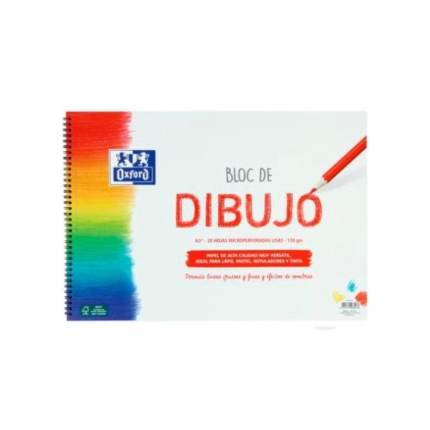 OXFORD BLOC DIBUJO ESCOLAR T/ BLANDA ESPIRAL 20H 130GR A3+ LISO BLANCO