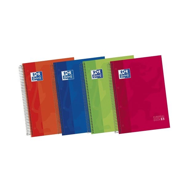 OXFORD CUADERNO EUROPEANBOOK 5 MICROPERFORADO 120 HOJAS (50% GRATIS) 5X5 TAPAS EXTRADURAS CLASSIC SEPARADORES A4+ COLORES VIVOS (5 UNIDADES)