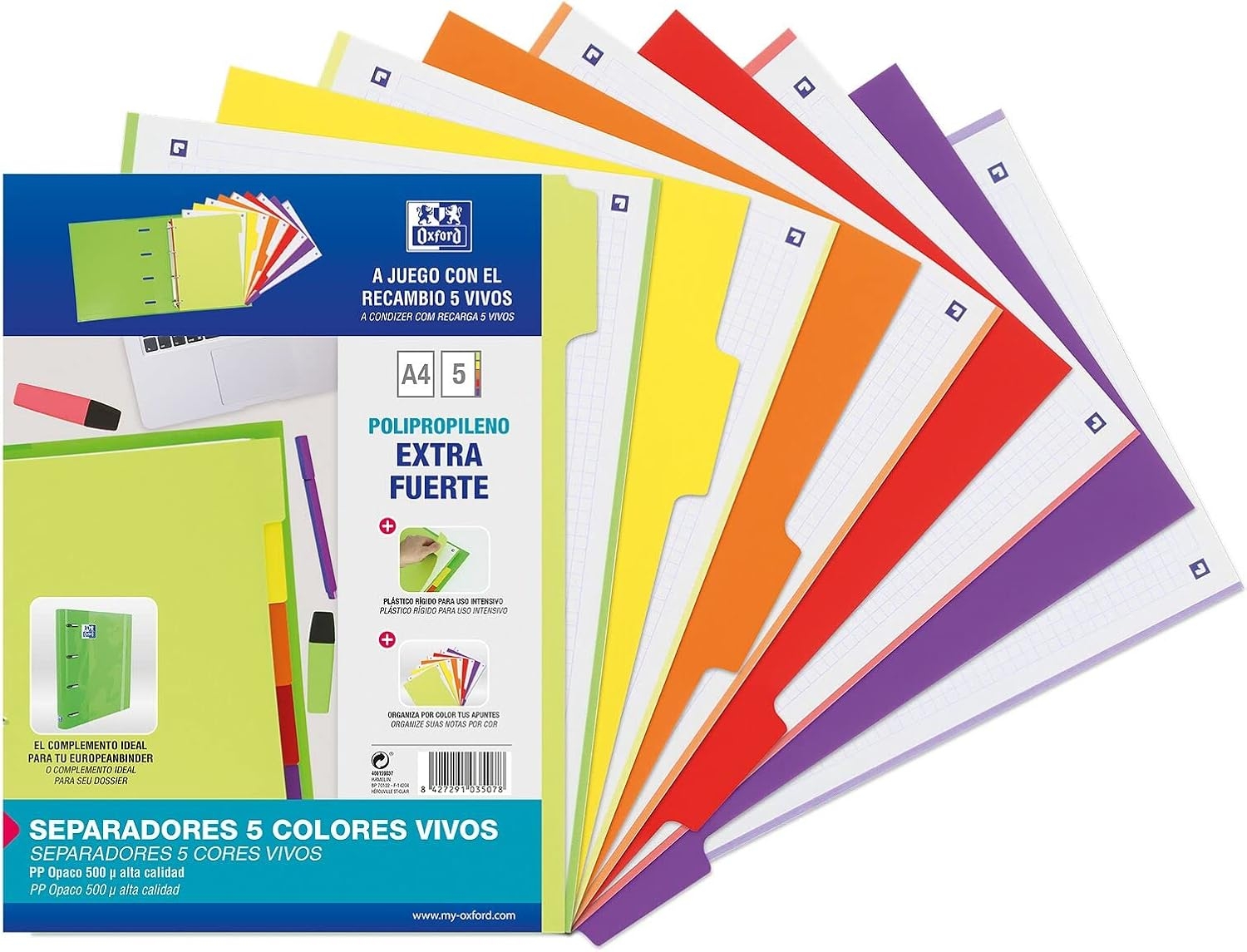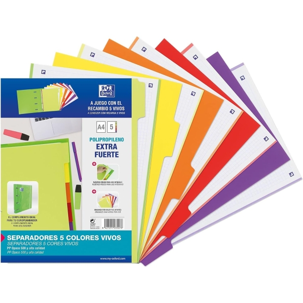 OXFORD JUEGO SEPARADORES 5 POSICIONES PP 500 MICRAS A4 C/SURTIDOS VIVOS