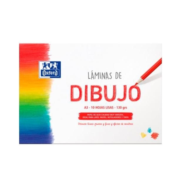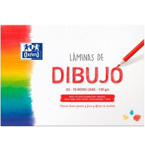 OXFORD LÁMINAS PARA DIBUJO ESCOLAR PACK 10 HOJAS 130GR A3 LISO BLANCO