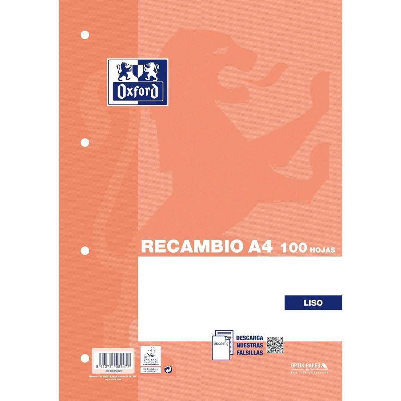 OXFORD RECAMBIO 100 HOJAS SUELTAS MICROPERFORADAS LISO A4 NARANJA