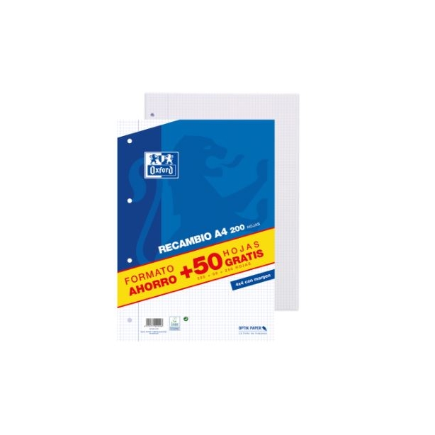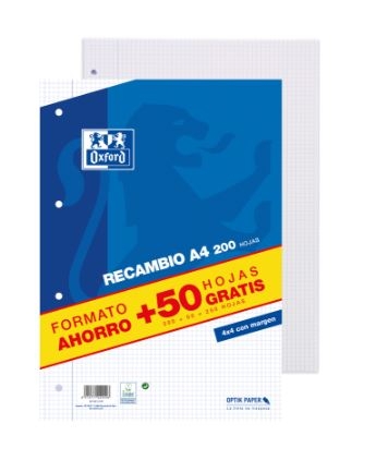 OXFORD RECAMBIO 200+50 HOJAS SUELTAS MICROPERFORADAS 4X4 CON MARGEN A4