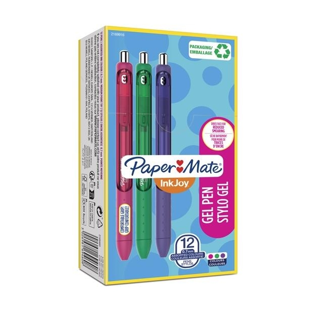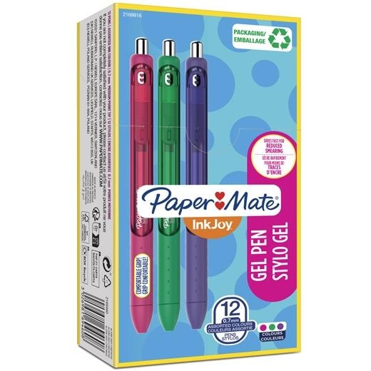 PAPER MATE BOLÍGRAFO INKJOY TK12 GEL 0,7MM C/SURTIDOS VERDE/ROSA/MORADO