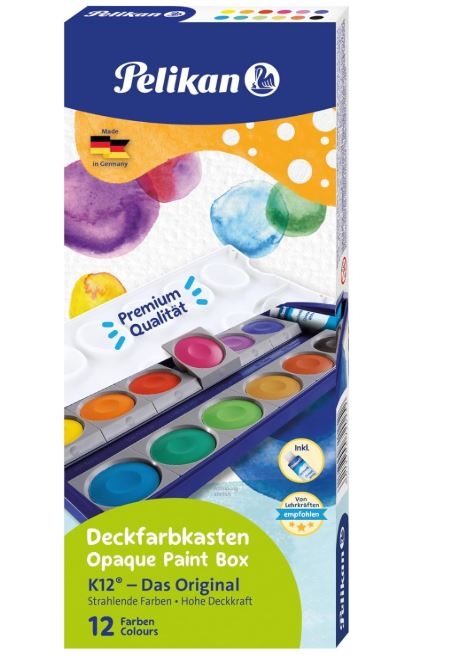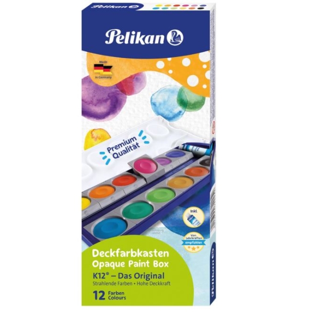 PELIKAN ACUARELAS 735 CUBRIENTE ESTUCHE de 12 + TUBO TEMPERA BLANCA