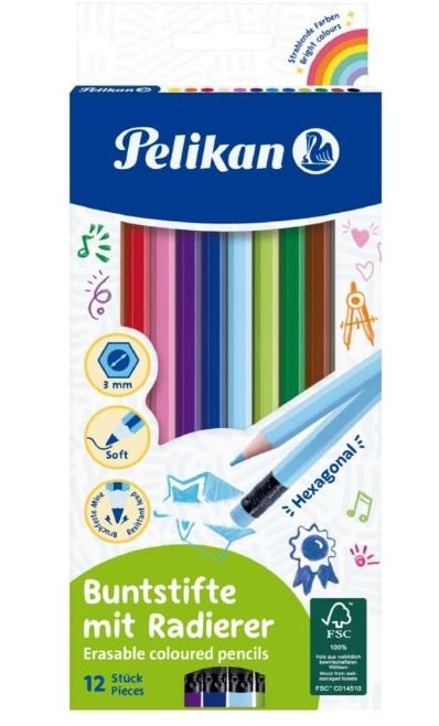 PELIKAN LAPICES DE COLORES BORRABLE CON GOMA (ESTUCHE DE 12)