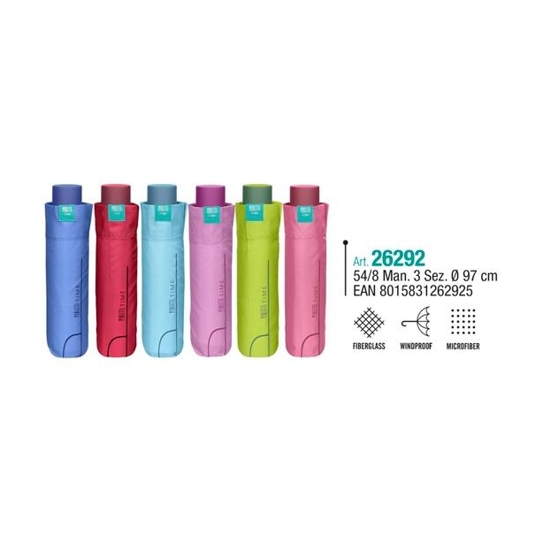 PERLETTI PARAGUAS 54/8 MAN 3 SEC ANTIVIENTO COLORES LISOS