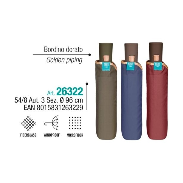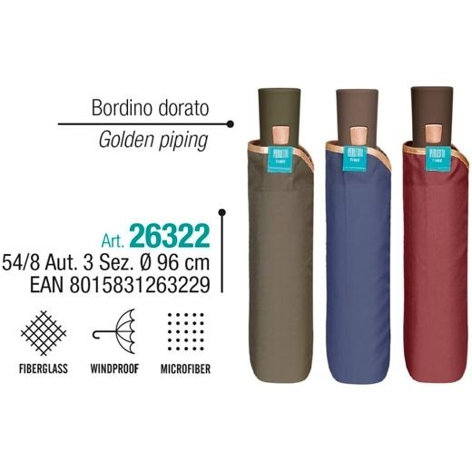 PERLETTI PARAGUAS HOMBRE 54/8 AUT. 3 SEC. LISO CON RIBETE