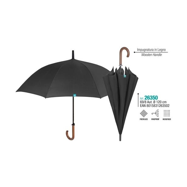 PERLETTI PARAGUAS HOMBRE GOLF 69/8 AUT. NEGRO MANGO MADERA