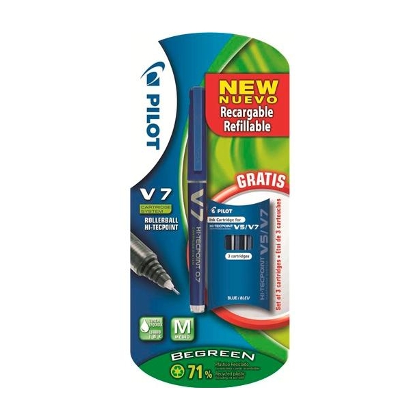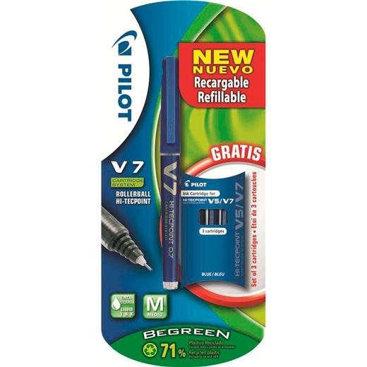 PILOT ROLLER V7 HI-TECPOINT RECARGABLE + 3 RECAMBIOS AZUL