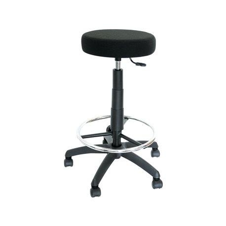 PIQUERAS Y CRESPO TABURETE MOD. TOLOSA GIRATORIO REGULABLE CON ARO REPOSAPIÉS TAPIZADO ARAN NEGRO