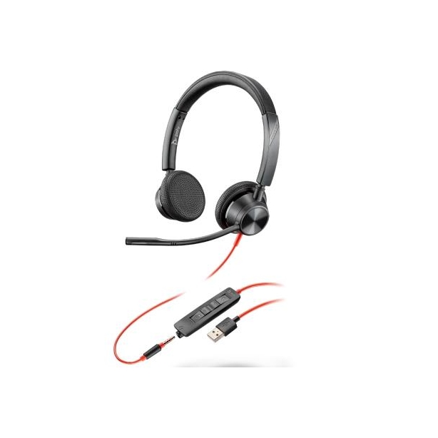 POLY AURICULARES BLACKWIRE 3325 DIADEMA BINAURAL C/ MICRÓFONO CONTROL DE VOLUMEN CABLE USB+JACK 3,5MM NEGRO