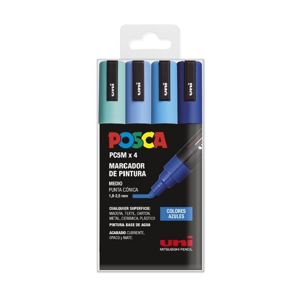POSCA MARCADOR PC-5M/4C NO PERMANENTE 1.8MM-2.5MM COLORES SURTIDOS AZULES -ESTUCHE 4U-