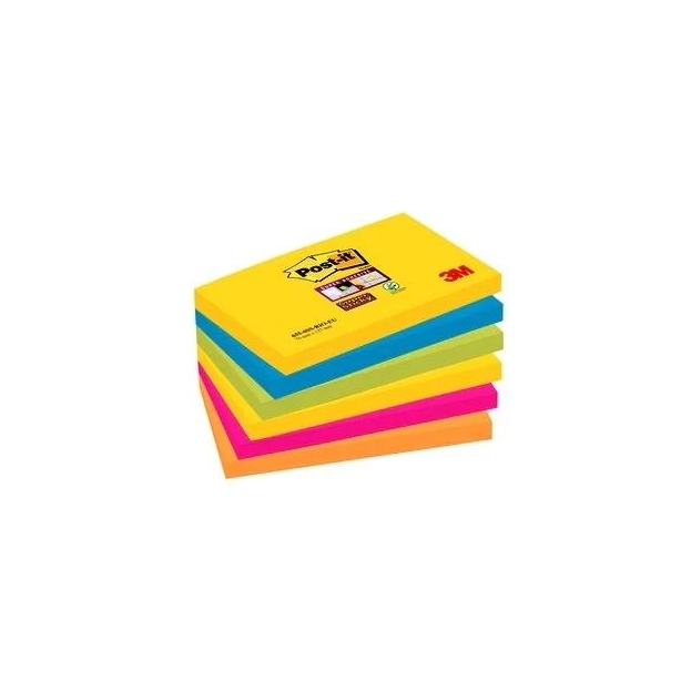 POST-IT NOTAS ADHESIVAS SUPER STICKY 4 COLORES LUGARES CARNIVAL 76X127 6 BLOCS